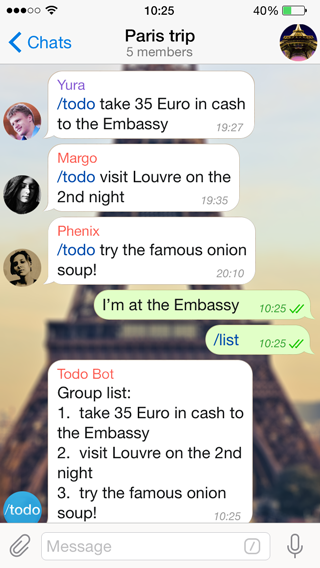 Whether it's planning a trip with friends, discussing a project with colleagues, or deciding what to buy at the store, the TodoBot makes sure you never forget a thing.
